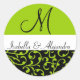 Green Swirl Damask Monogram Wedding Labels