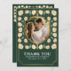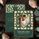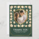 Express your gratitude with mediaeval charm! These wedding thank you cards feature your photo inside a shield-shaped frame, surrounded by intricate cream florals against a green background. A unique and elegant way to say 'thank you' to your loved ones!