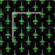 A simple repeat pattern of green T-38s on black make this fabric a great choice for party shirts, bandanas, quilts, and other fighter jet squadron sewing projects.