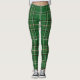 Stylish women's leggings made of cotton leggings with a design of dark colourful green tartan. Comfortable wide strap. High quality product. It looks modern and stylish. Comfort dressing for sports.