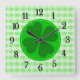 Green Tartan Pattern and Clover Lucky Square Wall Clock
