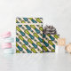 A roll of stylish Giftwrap, with a decorative 'tribal' pattern in Green and Teal, outlined in Black, on a Cream Background. Part of the Posh & Painterly "Jungle Drums" collection.