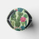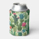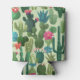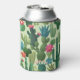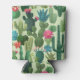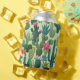 This is a pattern of decorative green and teal flowering cacti on a light greenery background.