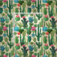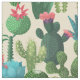 Green Teal Blooming Cacti Pattern Fabric
