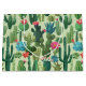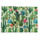 This is a pattern of decorative green and teal flowering cacti on a light greenery background.