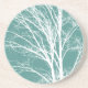Green Teal White Bare Tree Branches Coaster