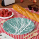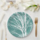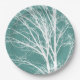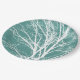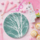 Green Teal White Bare Tree Branches Paper Plate