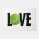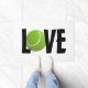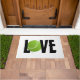 This unique tennis doormat design features the word LOVE with O as a green tennis ball.
