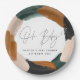 Green terracotta abstract watercolor baby shower paper plate