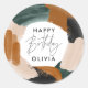 Green terracotta abstract watercolor birthday clas classic round sticker