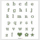 Gorgeous green lower case font typography monogram letters alphabet sticker pack for monogramming, personalising, customising, note writing, journals, notebooks, and more. This set also includes an exclamation point, heart, flower, and star.