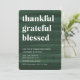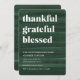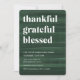 Bring elegance and warmth to your holiday celebration with this Green Thankful Grateful Blessed Thanksgiving Dinner Invitation. Featuring a deep green textured background with bold white typography, this modern design captures the spirit of gratitude and togetherness — making it perfect for Thanksgiving dinners, Friendsgiving gatherings, or autumn parties.