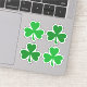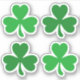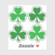 Stickers featuring green (or custom colour) three leaf shamrock clovers.