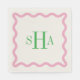 Green Three Letter Monogram with Pink Wavy Square Napkin