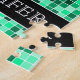 This puzzle design features a grid-like tiled squares pattern with various shades of green. It also features a personalised name.