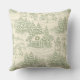 A vintage-style seamless pattern throw pillow depicting a peaceful winter village scene in soft green. Inspired by classic toile designs, it captures snowy cottages, pine trees, sleigh rides, and timeless holiday charm. Ideal for Christmas themes, nostalgic, and elegant vintage countryside aesthetic.