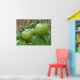 This beautiful print features a photograph of a bunch of unripe green cherry tomatoes growing on a tomato plant in a suburban garden. The photograph was taken using macro photography for a detailed result.