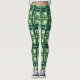 These leggings have a geometric design made from Ls in shades of green laid in different directions repeating across the design.