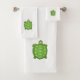 Green tortoise ornamented with flowers on white Towel Set. Elegant home decor towels.