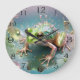 Green Tree Frog Reflections Fractal Art, Large Clock