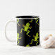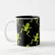 A cute pattern of green tree frogs, hopping, jumping and leaping over a dark background. This frog coffee mug would make a great gift for a frog lover, or even make a great housewarming gift for someone who loves frogs.
