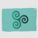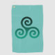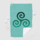 Green Triskele symbol. The Triskele or Triskelion symbol consists of three interlocked spirals or three arms as if it is moving from its centre. This Celtic symbol of movement or action represents the three worlds; the celestial, physical, and spiritual.