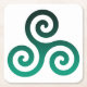 Green Triskele symbol. The Triskele or Triskelion symbol consists of three interlocked spirals or three arms as if it is moving from its centre. This Celtic symbol of movement or action represents the three worlds; the celestial, physical, and spiritual.