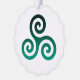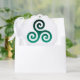 Green Triskele symbol. The Triskele or Triskelion symbol consists of three interlocked spirals or three arms as if it is moving from its centre. This Celtic symbol of movement or action represents the three worlds; the celestial, physical, and spiritual.