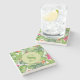 Green Tropical Leaves Pink Floral Monogram Stone Coaster