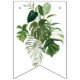 Love is 4 ever, quote elegant typography script green tropical Monstera leaves wedding décor bunting flags.