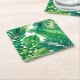 Green Tropical Palm Banana Monstera Leaves Square Paper Coaster