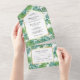 Green Tropical Palm Leaves Wedding All In One Invitation