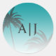 Green Tropical Palm Tree Beach Monogram Wedding Classic Round Sticker