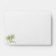 A simple yet elegant wedding envelope featuring two green palm trees on the front lower left corner. On the back flap is a template area for your return address. The inside has a green twin palm patterned tile. The entire envelope is customisable to suit your needs. This envelope design is well-suited for any tropical, ocean beach, coastal or seaside theme.