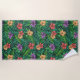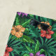 A Beautiful Beach Towel For Swimming Designed With Green Tropical Leaves And Colourful Hibiscus Flowers .