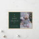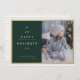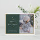 A typographic tree with a deep green background and faux gold border accent your photo on this modern holiday card.