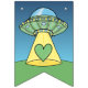 Happy Birthday, Earthling! Host an out-of-this-world alien-themed party with these cute Green UFO Happy Birthday Bunting Flags. The design features a digital illustration of a green and blue UFO that is beaming up a green heart. It is hovering in a dark blue sky above a grassy green hill. This spaceship design is perfect for a party celebrating the outer space lover in your life.