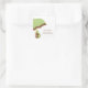 Chic mum to be holding a teddy bear and green polka dot umbrella. Perfect for gender neutral baby showers.