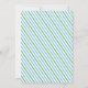 Green umbrella and sleeping baby boy shower by mail invitation. It showcases a sleeping baby boy on a cloud, a crescent moon, a star and a green umbrella with water drops. Around it there is a border with blue and green diagonal stripes and the same stripes cover the back. Some elements by Trina Clark and courtesy of vectorportal.com.
