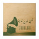 Quirky and unique Vintage Gramophone Tile in dark green featuring a silhouette of an old-fashioned gramophone and a cascade of musical notes on a digital art rendered paper background. This chic decorative tile will add vintage flair to any decor and is perfect for any music lover. Easy to customise, simply personalise with the text of your choosing. Click on the "Customise It" button to find additional personalisation options.