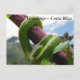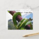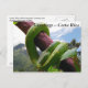 This postcard has a photograph of a vividly coloured green tree boa curled around a limb in Costa Rica. A volcano lets off some steam in the background.
