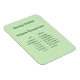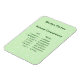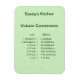 This magent is pretty and useful. It features a background that is mint green with white swirls on it. There is a volume conversion chart featuring U.S. volumes into Metric and back again. Perfect for someone with a cook book from another country or someone who has moved to another country!