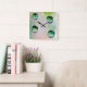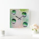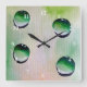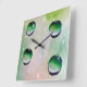 Green water drops art square wall clock