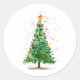 traditional watercolor artwork of a green christmas tree with colourful ornaments on a sticker.