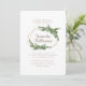 Composed of cursive script and serif typography; All against a backdrop of white background with green watercolor foliage.