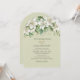 Green Watercolor Leaves White Floral Gold Wedding Invitation