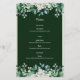 This elegant Green Watercolor Palette of love Wedding Menu is perfect for those looking for a sophisticated and stylish way to announce their wedding. The deep green background symbolises harmony and a connection to nature, while the white and cream flowers add a touch of romance and refinement. The calligraphy-style font highlights the importance of the event, with neat, readable text that exudes warmth and charm. This card design is ideal for a nature-inspired or vintage-themed wedding.