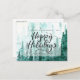 Green Watercolor Pine Trees | Happy Holidays Holiday Postcard