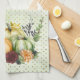 Green Watercolor Pumpkin Gold Dots Autumn Tea Towel