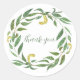 Green watercolor willor wreath Classic Round Sticker " Thank you"